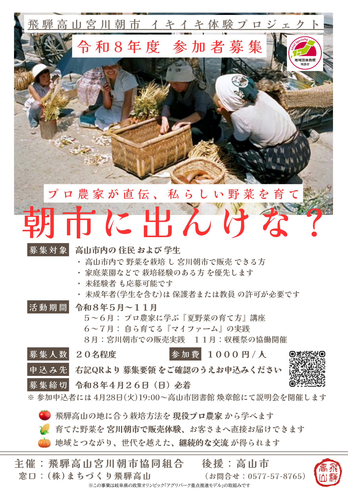 令和8年度「飛騨高山宮川朝市アグリパーク」第1期生 参加者募集!